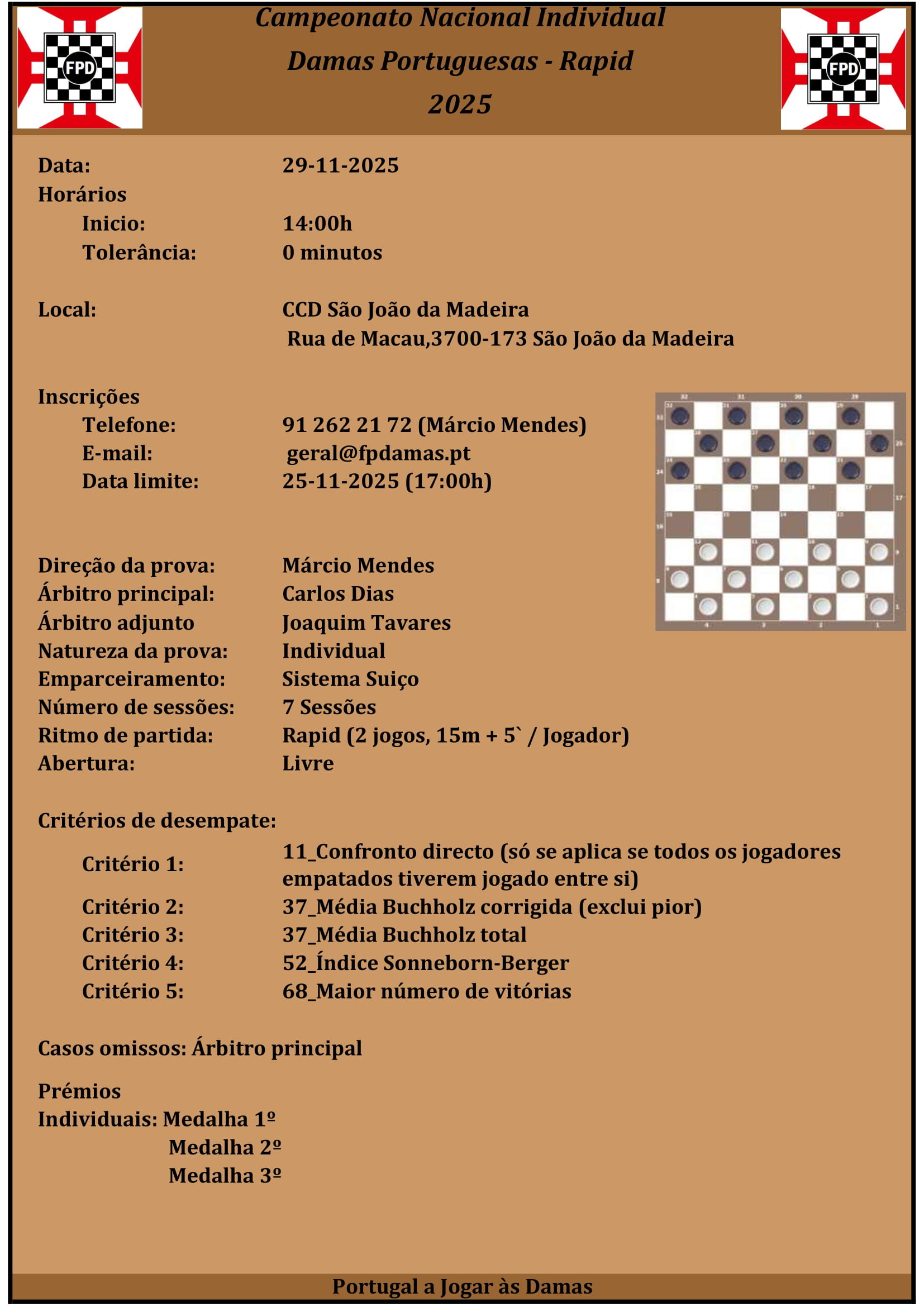 Competições próximas COMPETIÇÕES Dias Horas Minutos Segundos Campeonato Nacional Damas Portuguesas – Rapid Clique aqui para ver Regulamento